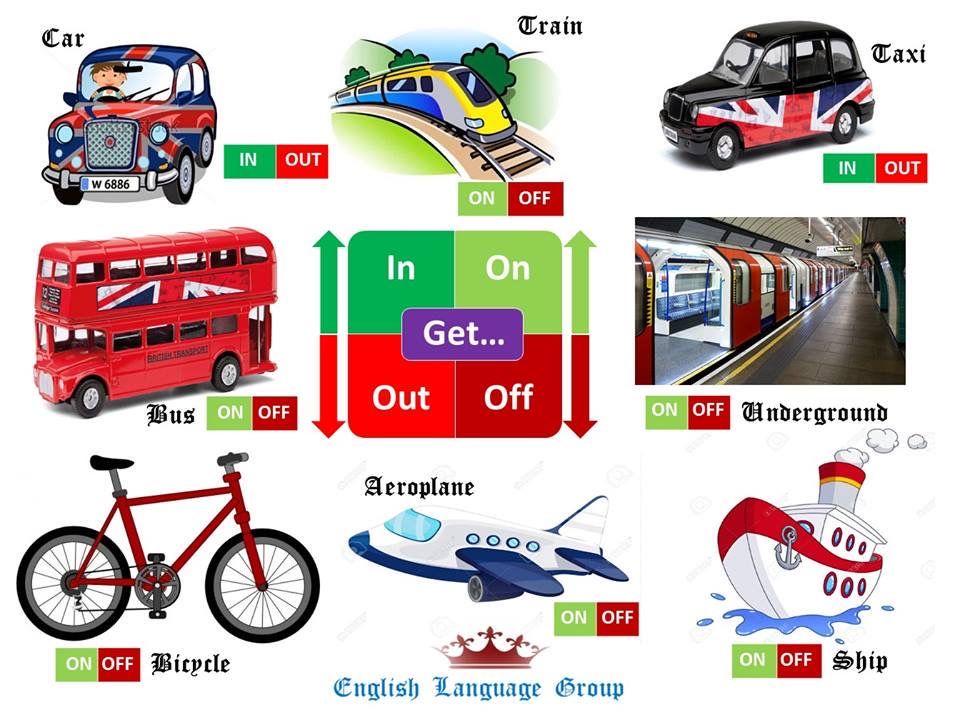 اگه بتوانیم داخل وسیله ی نقلیه بایستیم و راه بریم باید از get on و get off استفاده کنیم.